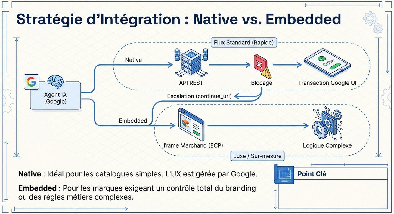 Google offre deux chemins techniques distincts pour intégrer l'UCP :